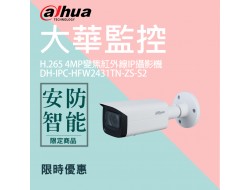 【大華dahua】專業型H.265 4MP變焦紅外線IP攝影機(DH-IPC-HFW2431TN-ZS-S2)